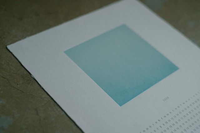 カレンダー [2026] 活版印刷 / モノタイプ letterpress / monotype 210mm×300mm 手漉きの再生紙/ (福)べっぷ優ゆう handmade recycled paper カレンダー2026 インクのグラデーションに 「ある時」を思う それは景色 あの日の空 まだみぬ場所 肌 毎日ふと出会う 非日常はいつも あなたの中に ______ (福)べっぷ優ゆう https://www.beppu-yu-you.net/紙すき紹介 ___